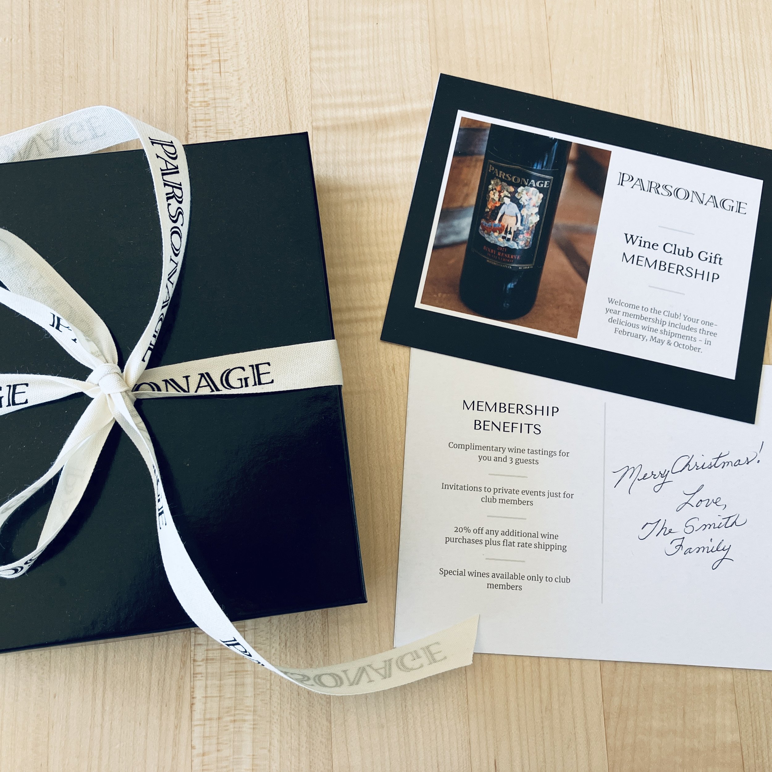 An annual wine club membership makes a great gift! Gift recipients will receive 3 shipments (February, May & October) and get all the benefits of club membership - complimentary tastings, invites to events, $20 flat rate shipping and 20% off any wine purchases.