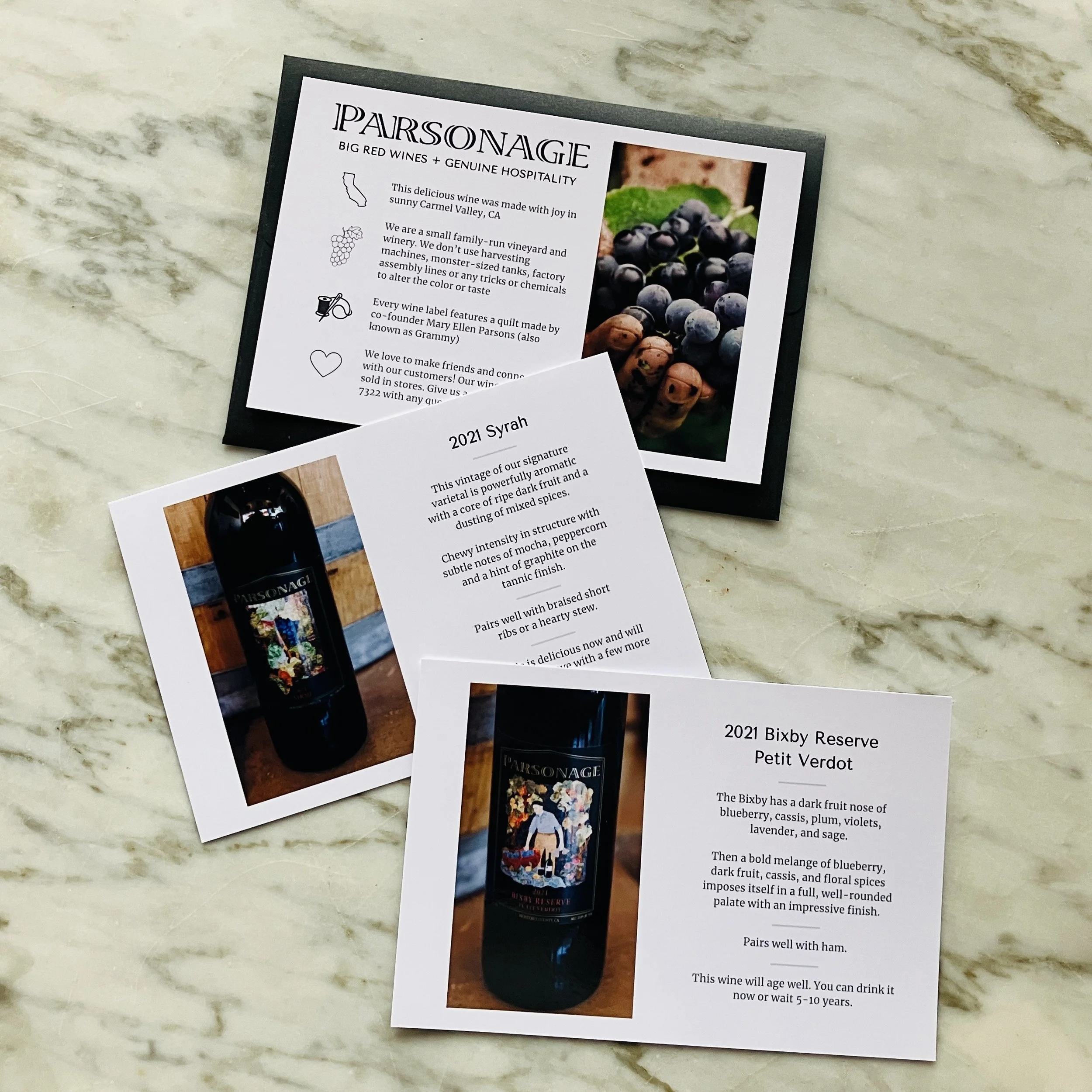 For any gift order, we will include tasting notes with pairing recommendations for each wine.